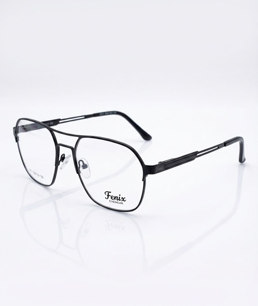 Take flight with the iconic Fenix 721 aviator eyeglasses from Eye Zone US. This classic full-rim frame features a sleek black metal construction with the signature double bridge design, delivering timeless pilot-style sophistication and modern comfort. Clear demo lenses offer undistorted vision and are fully compatible with your custom prescription.