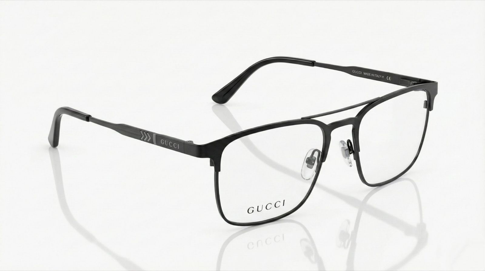 Signature Details: The slim temples are accented with a unique chevron/arrow textured pattern and the discreet “GUCCI” engraving, showcasing authentic brand aesthetics.