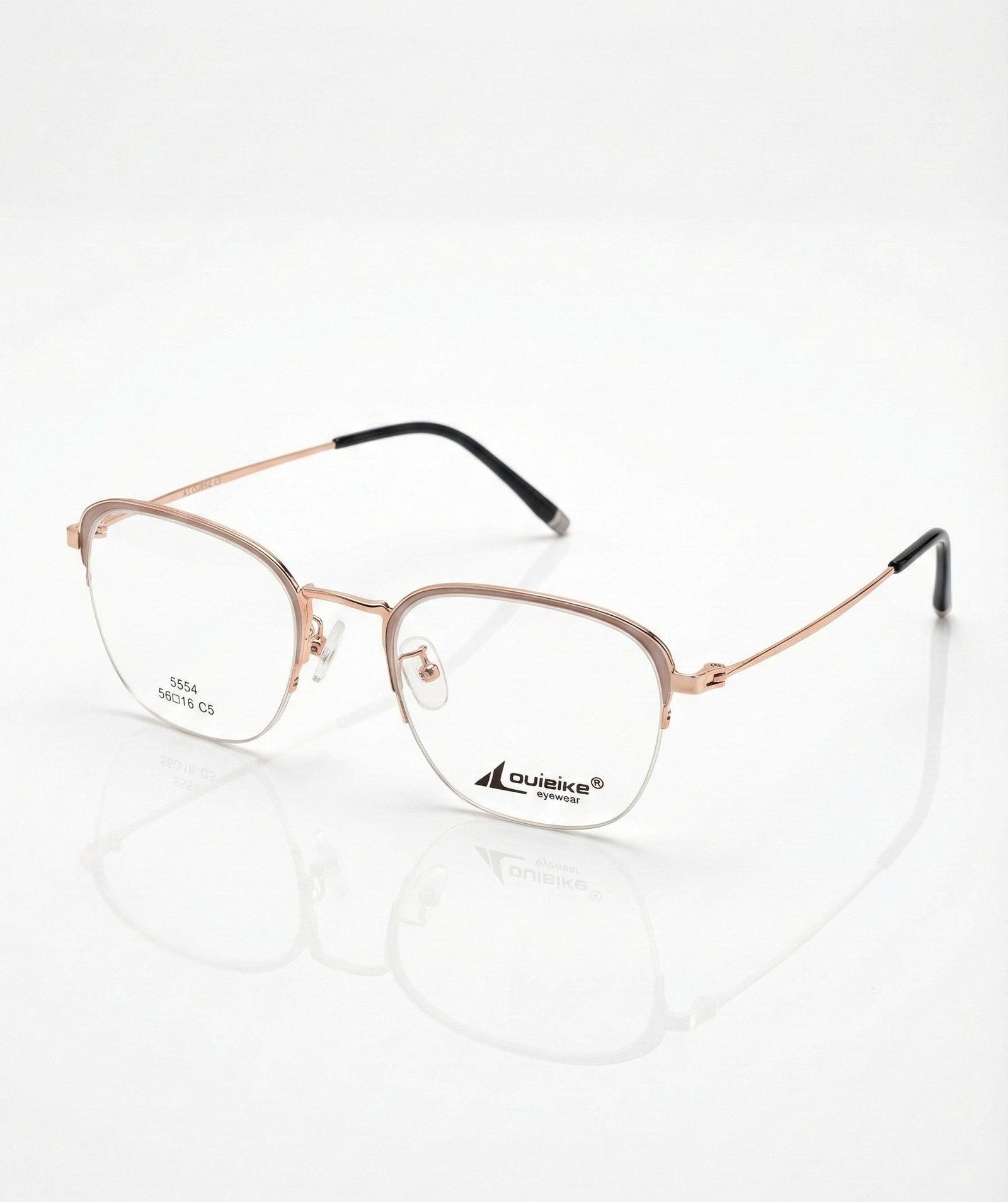 Louibike 55616 C5 Rose Gold Semi-Rimless Eyeglasses | Stylish Clear Lens Frames | Eye Zone US