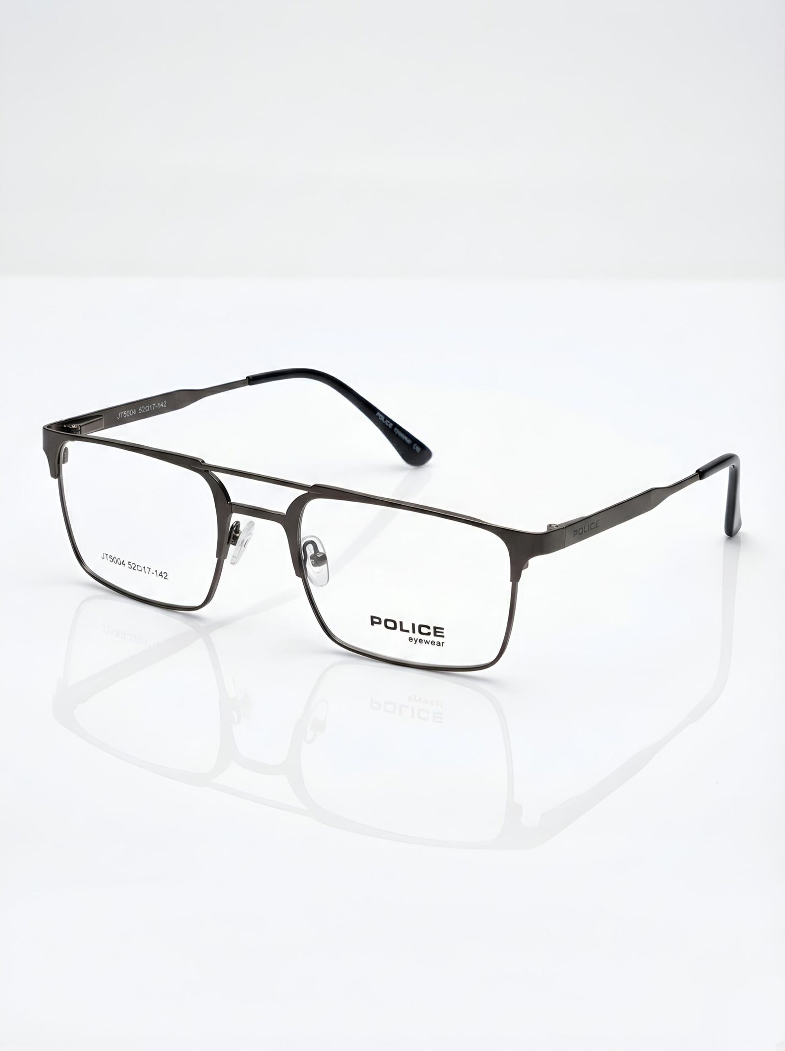 – Engraved “JT5004 52[]17-142” on lenses and “POLICE” branding on temples